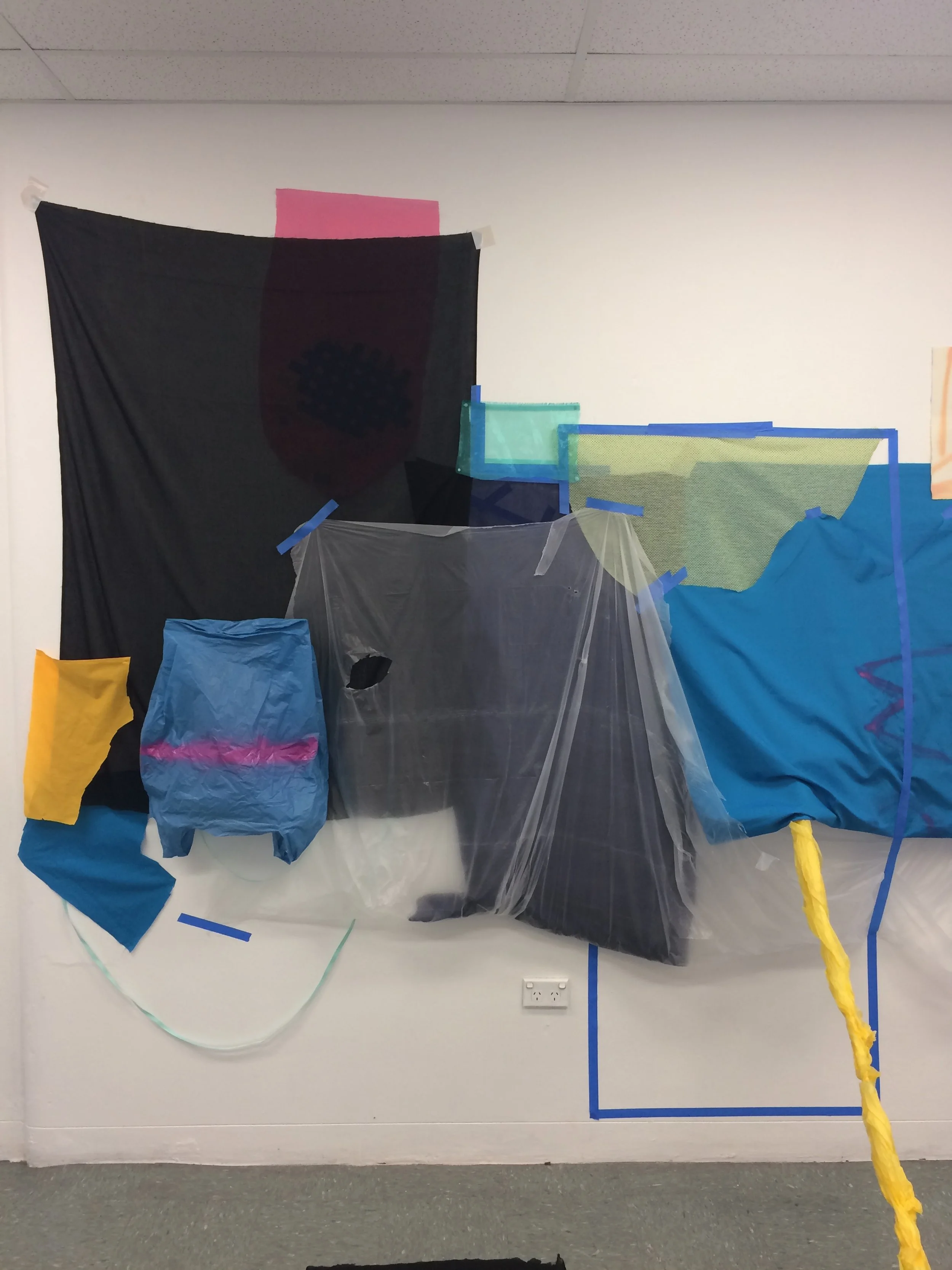 In the project space, Bradlee Wiseman explored the role of the artist in the act of painting by reflecting on his own creative process. His approach begins with an instinctive mark—one that responds to his emotional state and awareness of space. Grounded in these ideas, his paintings extend beyond the wall and into the surrounding environment, inviting audiences to navigate painting as a three-dimensional form